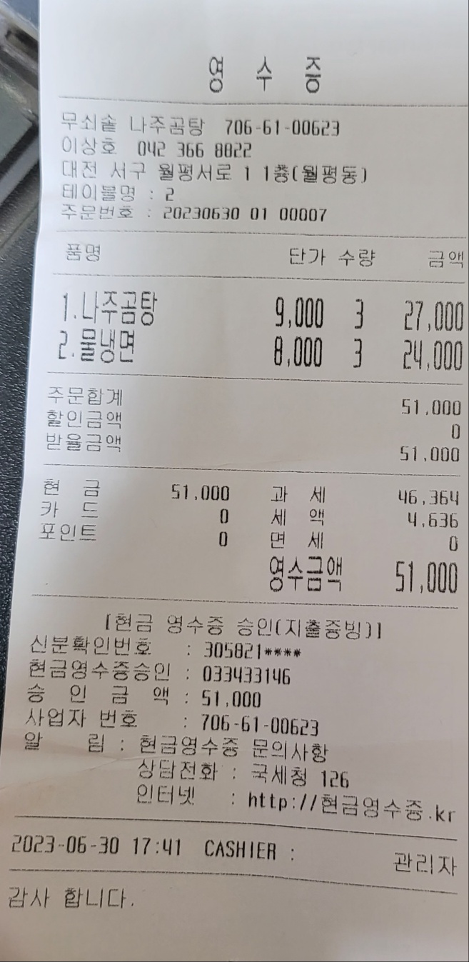 나주곰탕/ 2023.06.30/식비/51,000원