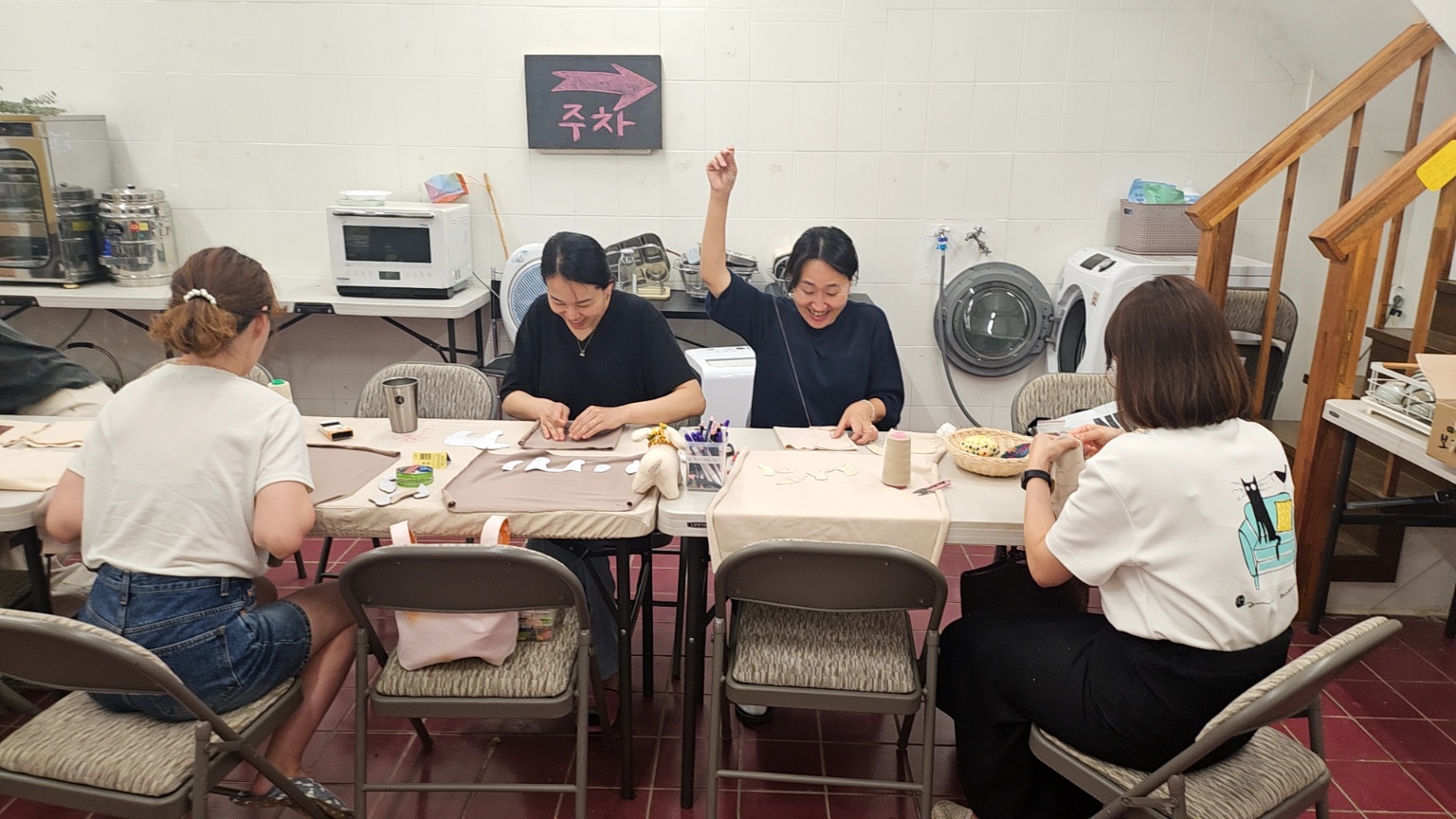 오랜만에 모여 함께 저녁을 먹었습니다. 이번엔 채이어머님이 바질김밥을 만들어 오셨어요. 짭잘하고 향긋한 바질김밥! 저희 모두 처음 먹어 보았는데 아주 별미였습니다! 후다닥 정리를 마치고 강아지인형 만드는 방법을 알아보았습니다. 간단히 말하면 도안을 그리고 자르고, 이어 바느질하면 끝인데, 입체로 만들어지는 과정을 들어보니 만만치 않은것 같습니다. 도안 옮겨 그릴때만해도 종알종알 이야기들이 많았는데 바느질을 시작하니 모두 집중하느라 조용합니다.